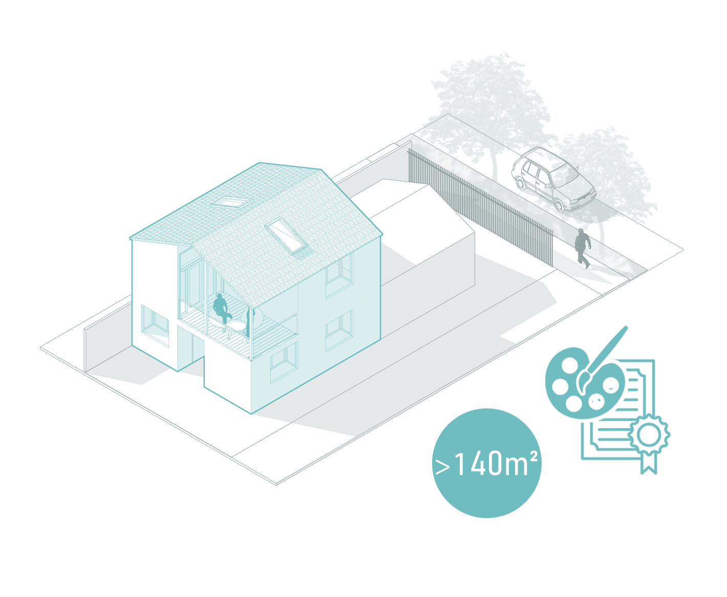 La categoría de escala mayor se refiere a un diseño más complejo, de una ampliación de dos niveles o diseño total de un edificio, que comprendiera a más de 140m².