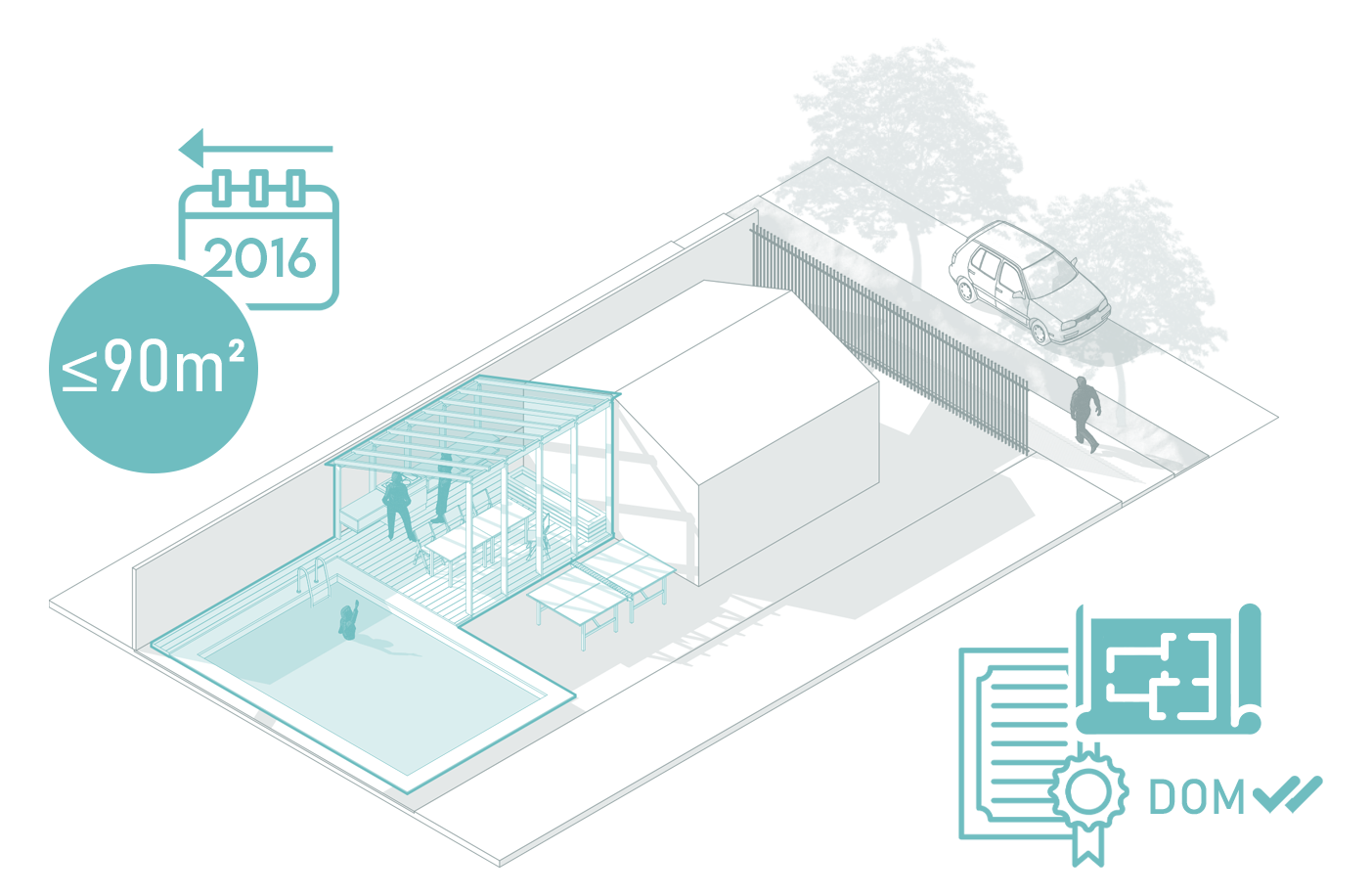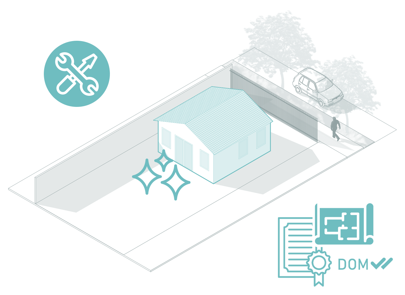 Se regulariza construcciones que se evidencie su existencia antes del Febrero del año 2016 (fecha publicada la ley), avalúo no superior a las 1000UF en la misma fecha y que conste hasta los 90m². Incluye ingreso del proyecto a la Dirección de Obras correspondiente a la municipalidad de la comuna respectiva.